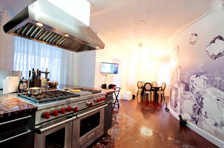 Кухня звезды была выполнена специально на заказ в Германии. Здесь имеется все необходимое, чтобы приготовить любые кулинарные шедевры. Помимо свободной рабочей зоны имеется огромная плита и два духовых шкафа. В общем, такой кухне мог бы позавидовать даже самый топовый шеф-повар. Неподалеку расположена обеденная зона, выполненная в стиле необарокко.